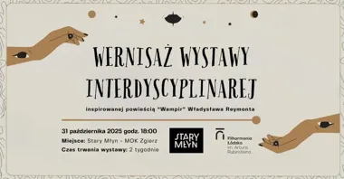 Mgła, gasnące latarnie i poczucie, że coś zza rogu obserwuje — taki klimat zapowiada wernisaż interdyscyplinarnej wystawy „Wampir” w Starym Młynie. Inspiracja powieścią Władysława Reymonta przełożyła się na prace pełne niedopowiedzeń, dźwięków i ruchu. Warto zajrzeć.