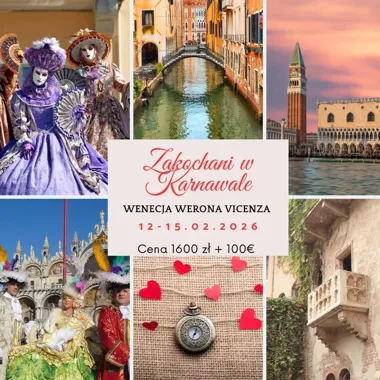 Krótka, zaplanowana wycieczka w trakcie karnawału obejmująca zwiedzanie Werony, Vicenzy oraz udział w spektakularnych wydarzeniach weneckiego karnawału. Oferta przeznaczona dla osób chcących zobaczyć najważniejsze zabytki regionu i poczuć atmosferę karnawałowych ulicznych przedstawień, parad kostiumowych oraz lokalnych atrakcji. Wyjazd organizowany jest jako wycieczka autokarowa z noclegami i posiłkami w cenie podstawowej.